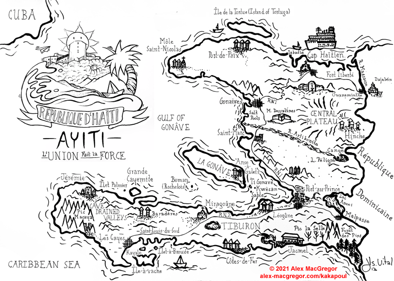 Kakapoul includes twelve hand-drawn maps by Haitian artist Jean Louis Samuel VITAL. A full manuscript is available upon request.